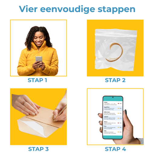 Bij aankoop ontvangt u een testformulier rechtstreeks op het opgegeven e-mailadres en verdere instructies. Vul gewoon het formulier in, voeg een monster toe en stuur het terug naar het opgegeven adres. Uw resultaten worden verwerkt en naar uw e-mail verzonden.
